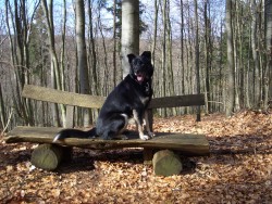 Ich möchte Euch hier von einer weiteren, tollen Sonntags-Kurzwanderung erzählen: Am 4. März 2007 bin ich mit Frauchen und ihren Eltern bei schönstem Wetter am Nonnweiler Stausee gestartet. Am See entlang musste ich noch an der Leine bleiben (Man (und Hund) darf in dem See nämlich leider nicht schwimmen). Als wir in den Wald kamen, durfte ich dann aber nach Hundeherzenslust toben. Am Wegrand verlief fast die ganze Zeit ein kleiner Bach, was mich ein bissel dafür entschädigt hat, dass ich nicht in den See durfte. Auf dem Bild seht Ihr mich ganz oben auf dem Hunnenring...puh, war das ein steiniger Anstieg! Der Hunnering wurde im 1. Jahrhundert vor Chr. von den Treverern erbaut. In Kriegszeiten bot der Ring Tieren und Menschen Schutz (hat Frauchens Dad auf einem Schild gelesen). Das kann man sich aber gut vorstellen, wenn man diesen riesigen Steinwall aus der Nähe sieht! Gleich daneben gab es einen Platz, auf dem man sehen und lesen konnte, wie die Menschen früher so gelebt haben. Mir hat der Platz super gefallen, weil Frauchen mit mir ganz viele, tolle Übungen auf und mit den Skulpturen und Steinbauten gemacht hat. Da haben mich sogar die anderen Leute (und Hunde) überhaupt nicht interessiert. Naja, Ihr bekommt ja auf den Bildern unten einen kleinen Eindruck von meinen Erlebnissen. Ich kann Euch nur sagen, dass ich abends ziemlich müde war... (sogar der kleine Mops-Rüde abends im Biergarten am Nachbartisch hat mich nicht mehr aus der Ruhe gebracht...).